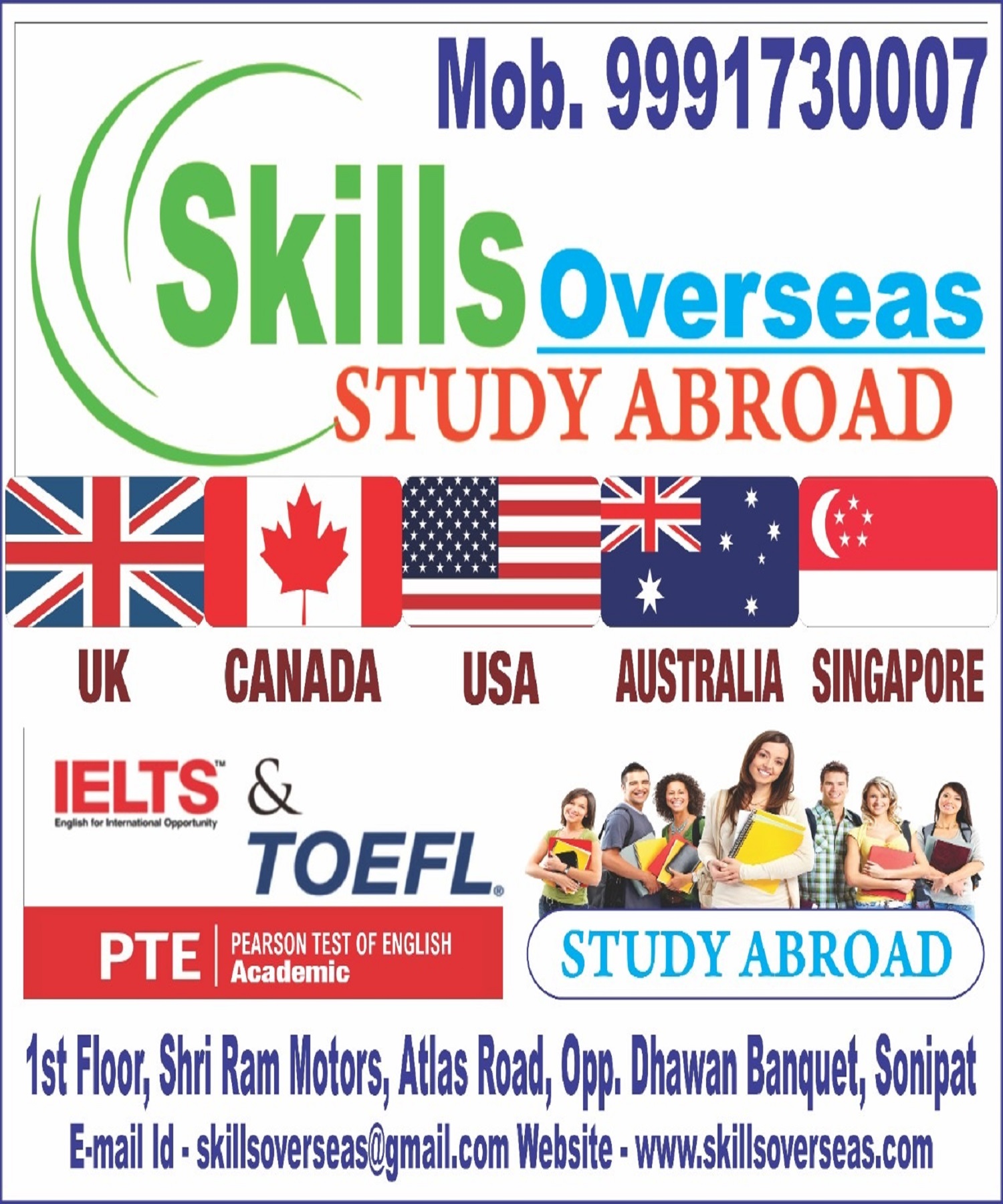 • "I had an Excellent experience! Got my visa without much efforts from my side. Skills Overseas Education Consultancy took care of it all. Very friendly staff who are very much accessible and who were spontaneous in responding to my queries." - Lucky Arora